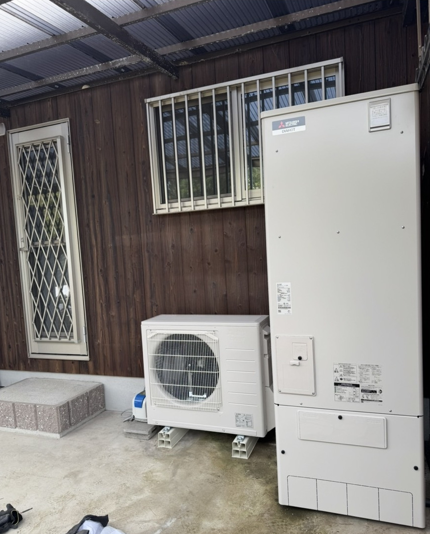 京都市伏見区 Panasonicエコキュートから三菱へ交換|SRT-S467 2026年4月24日 最終更新日時 : 2026年4月13日 ビフォー アフター 京都市伏見区の戸建て住宅にお住まいのK様より、 「お湯の温度が安定せず、エラーも出るようになってきた」とのご相談をいただきました。 既設はPanasonicエコキュートで、使用年数は約14年。 ヒートポンプの能力低下や制御基板の劣化により、 給湯性能が不安定な状態でした。 突然の故障によるお湯切れを防ぐため、 今回エコキュートの交換工事をご依頼いただきました。 施工内容 今回は使い勝手と省エネ性に優れた **三菱 エコキュート SRT-S467(460L・フルオート)**を設置しました。 既存の基礎・配管を活かしながら、 ヒートポンプユニットも含めて一式交換。 施工は約半日で完了しました。 メーカー乗り換えのポイント Panasonicから三菱へ変更することで、 ・安定した給湯性能 ・シンプルで使いやすい操作性 ・高い省エネ性能 といったメリットがあります。 また、同容量の460Lタイプを選定することで、 これまでと同じ使用感で違和感なくお使いいただけます。 交換後の変化 新しいエコキュートに交換後は、 ・お湯の温度が安定 ・エラーの解消 ・湯はり・追い焚きの快適性向上 といった効果があり、 安心してご使用いただけるようになりました。 さらに、最新モデルは省エネ性能も向上しており、 電気代の削減にも期待できます。 お客様の声 「お湯のトラブルがなくなって安心しました。 三菱にして正解でした!」