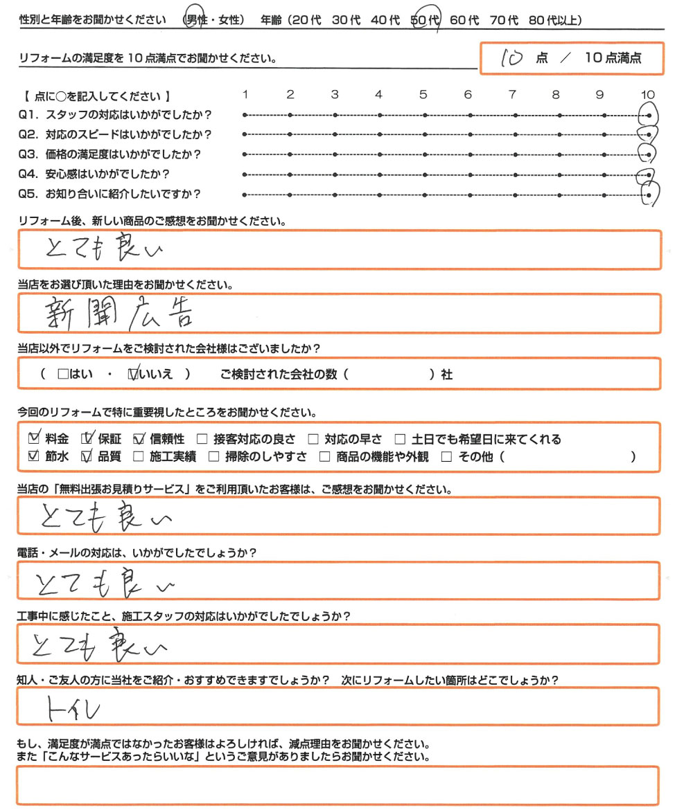今は心配なく使用させていただき 10年保証となって安心日常へ