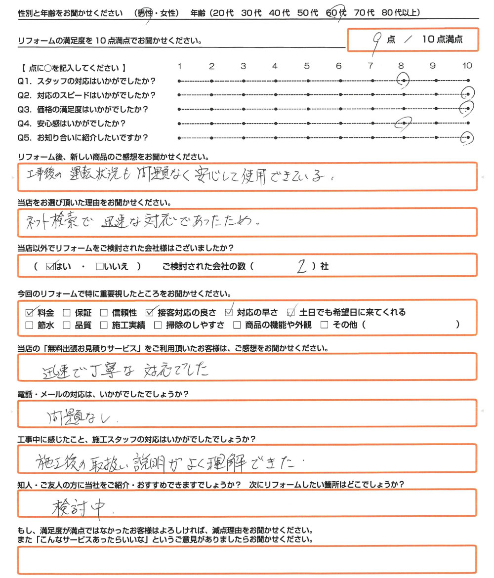 Q. 当店の「無料出張お見積りサービス」をご利用頂いたお客様は、ご感想をお聞かせください