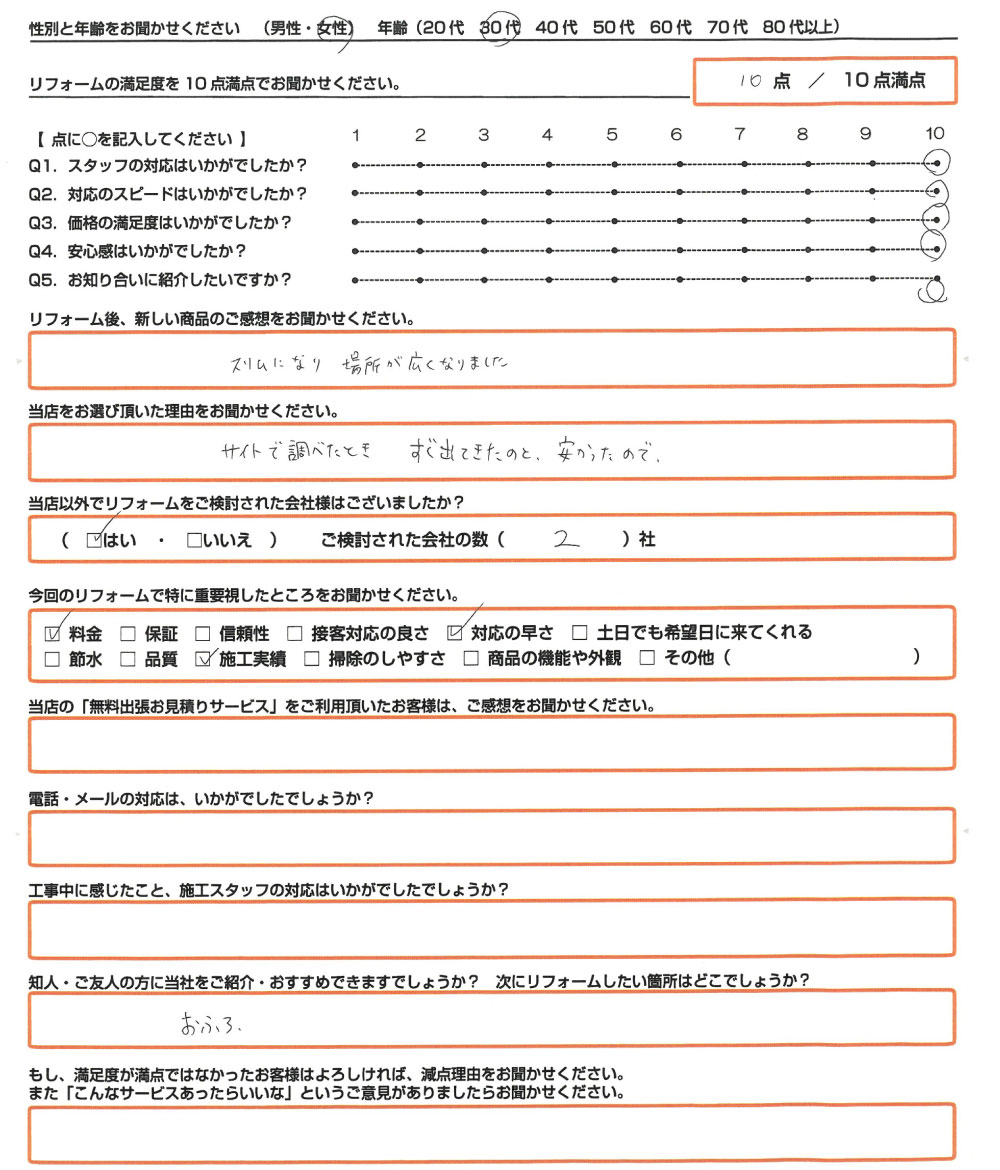 Q. 当店の「無料出張お見積りサービス」をご利用頂いたお客様は、ご感想をお聞かせください